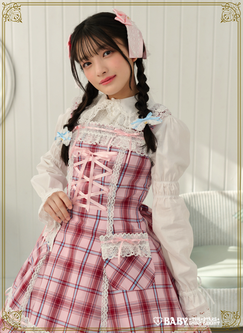 裾スカラップタータンチェックジャンパースカート&リボンコームセット