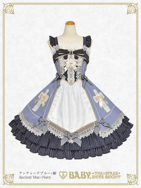 スカート部分のクロスモチーフが印象的な一着は配色感が楽しめる色展開が楽しく、お揃いのヘッドドレスの展開もございます!
